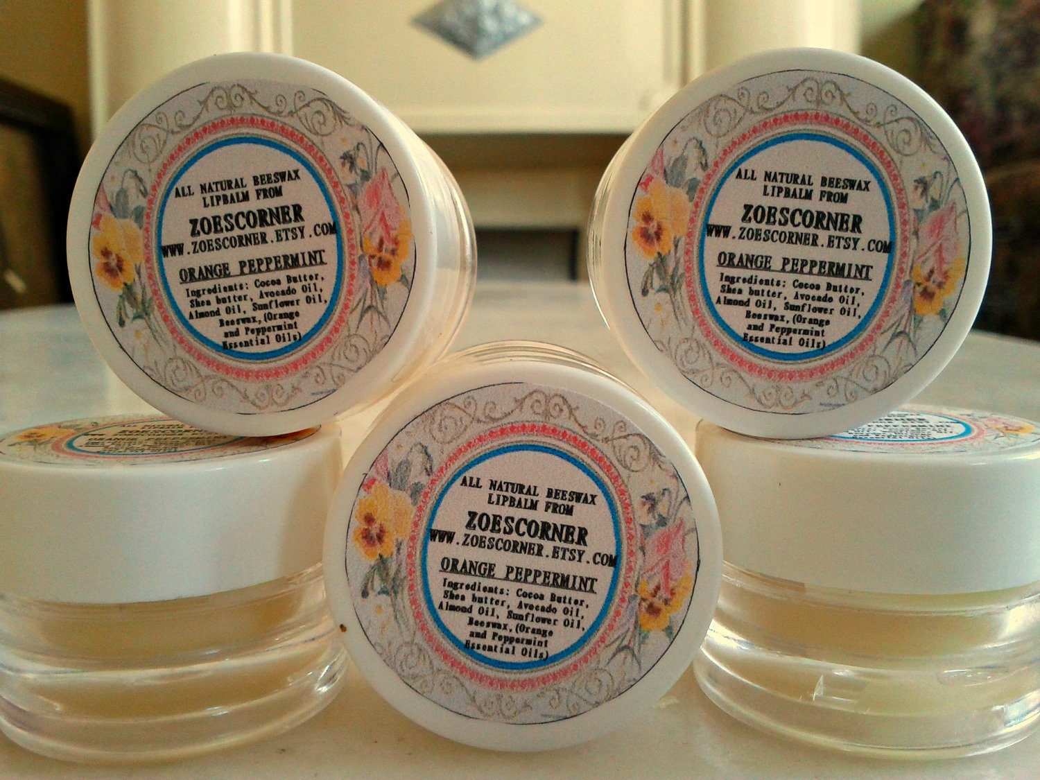 All Natural Beeswax Lipbalm- Orange Peppermint Lipbalm Tub- Wonderfully minty and orangey